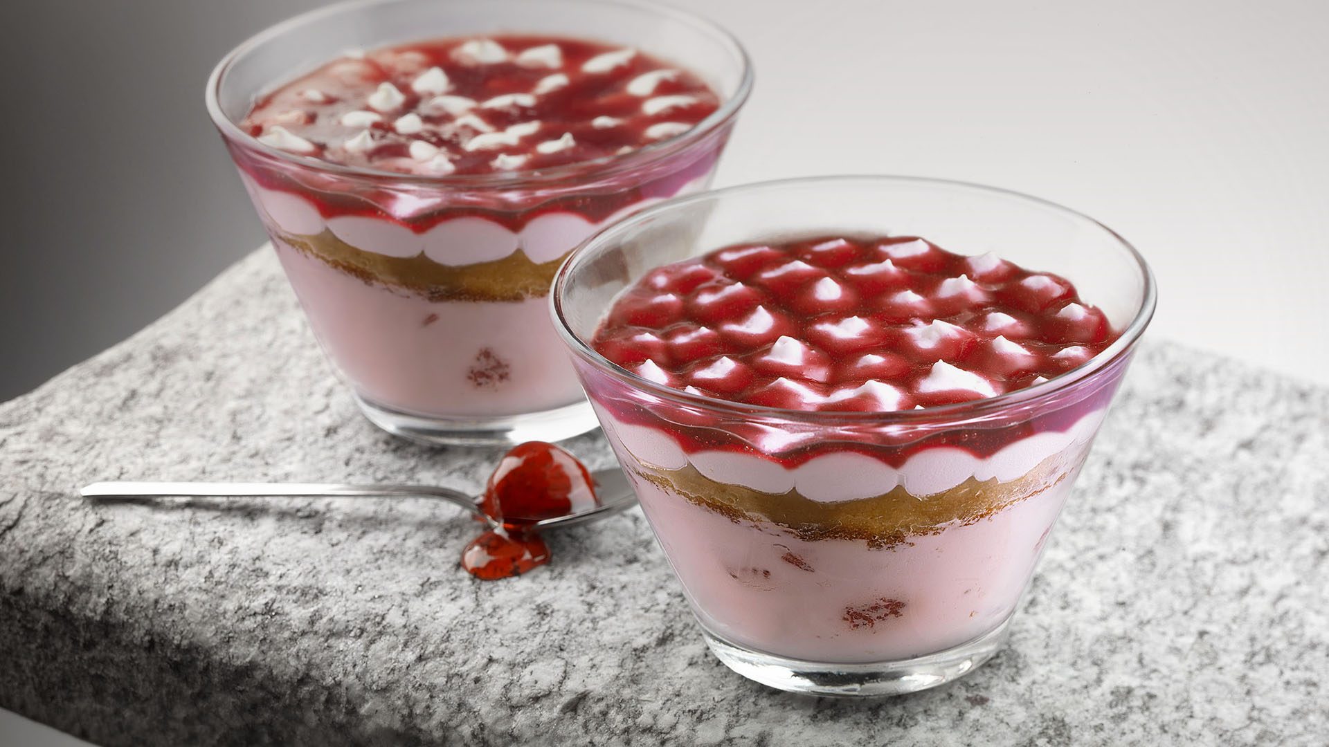 Semifreddo con fragole candite e Pan di Spagna inzuppato al gusto di vaniglia e fragola